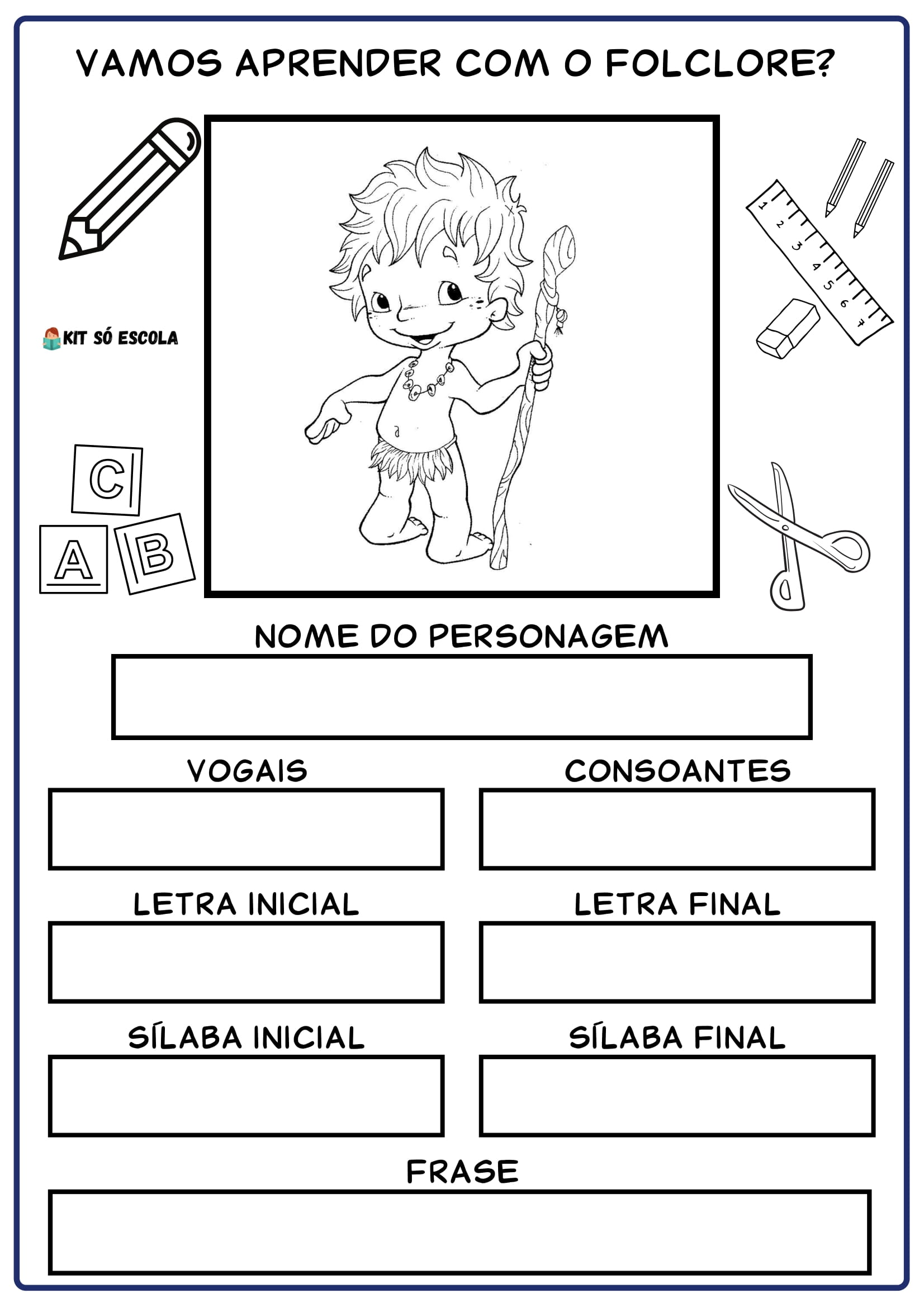 - Personagens do Folclore: Cada página apresenta um personagem diferente (Saci-Pererê, Cuca, Boto, Mula sem Cabeça, Boitatá), tornando o aprendizado culturalmente relevante.