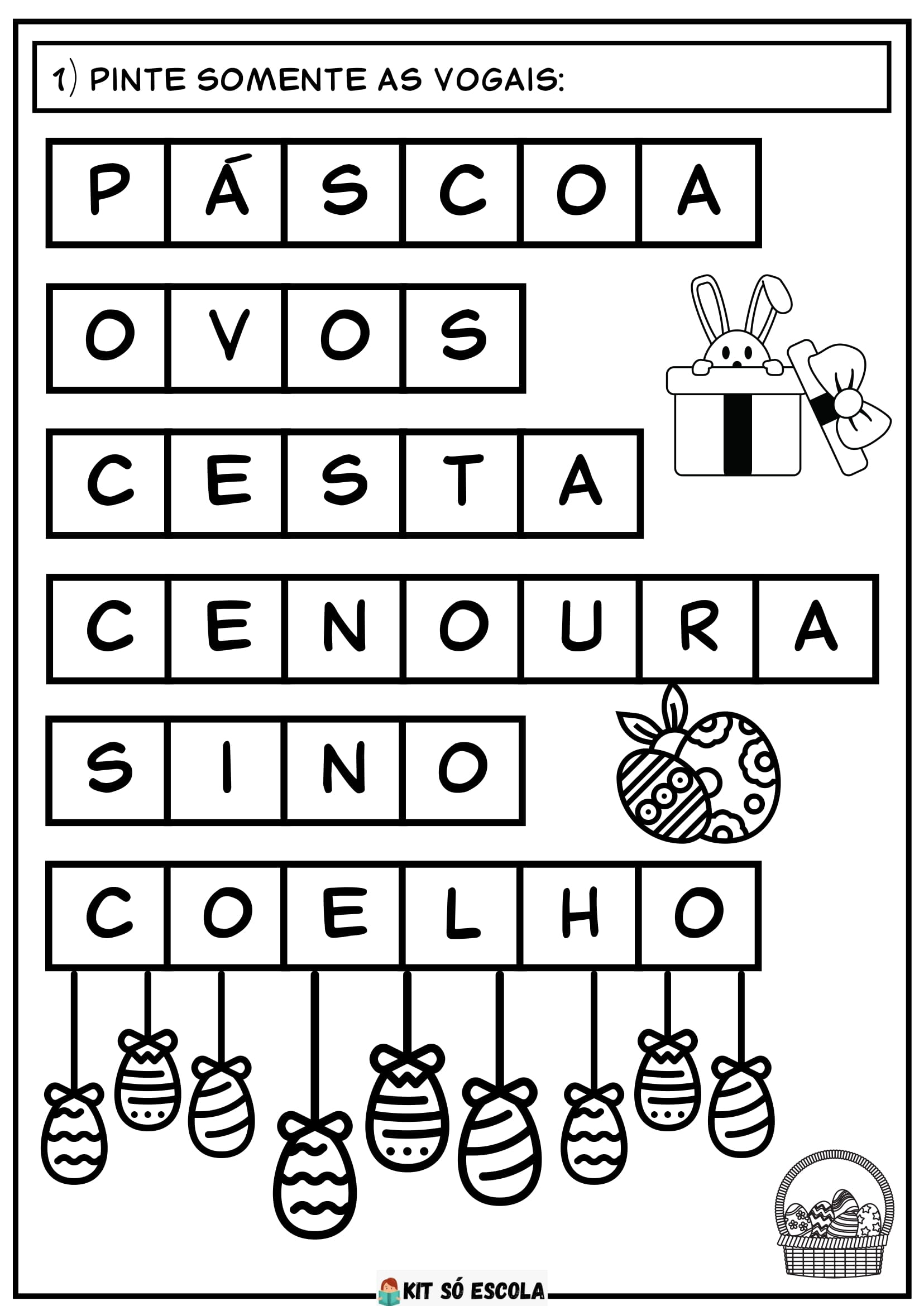 Mais de 80 páginas com atividades, desenhos, cards dos símbolos e caça aos ovos para aprender brincando!
