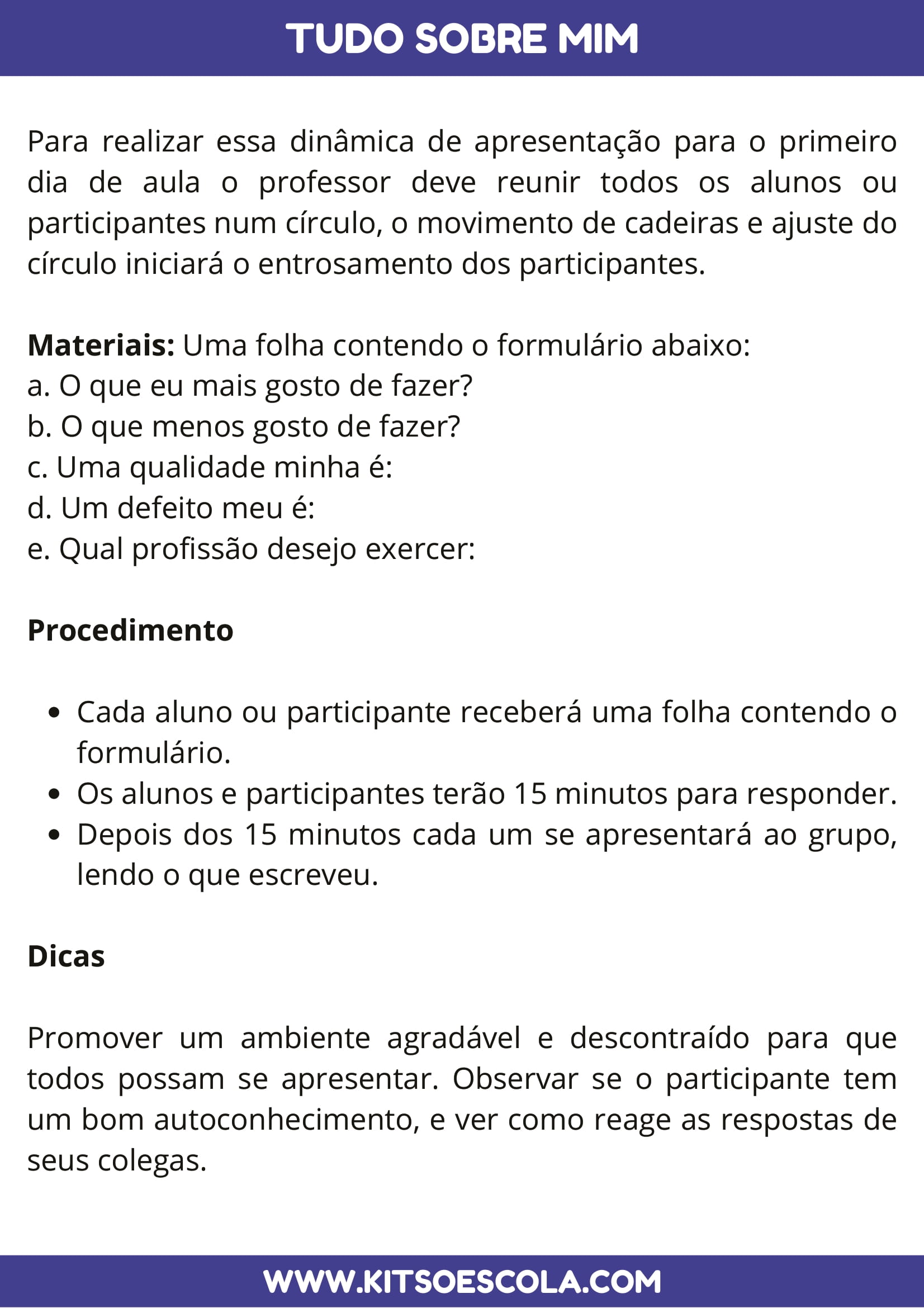 ✅ Brincadeiras lúdicas para quebrar o gelo e fortalecer vínculos;