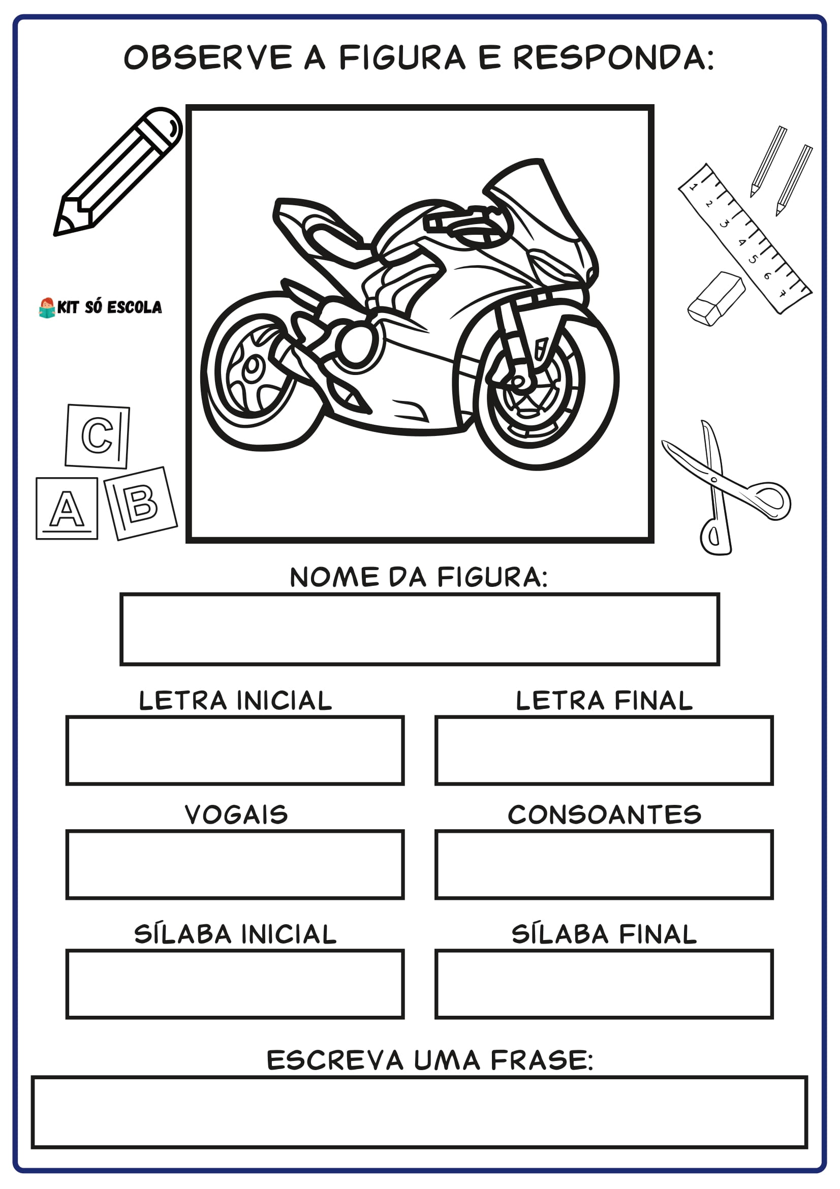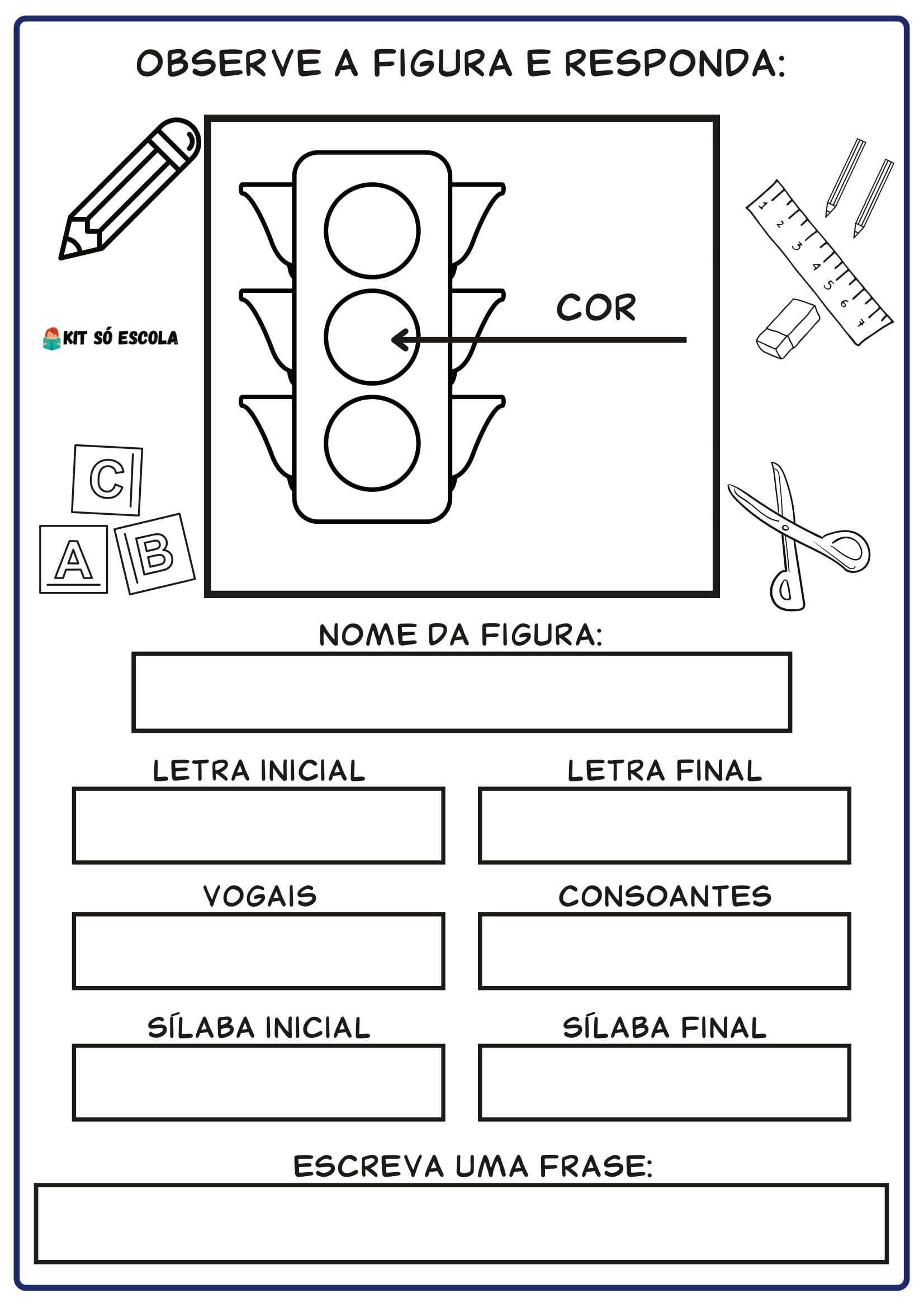 São 21 páginas em PDF com atividades sobre nome da figura, vogais, consoantes, letras e sílabas iniciais e finais, além de formação de frases. Pronto para imprimir e com acesso vitalício!