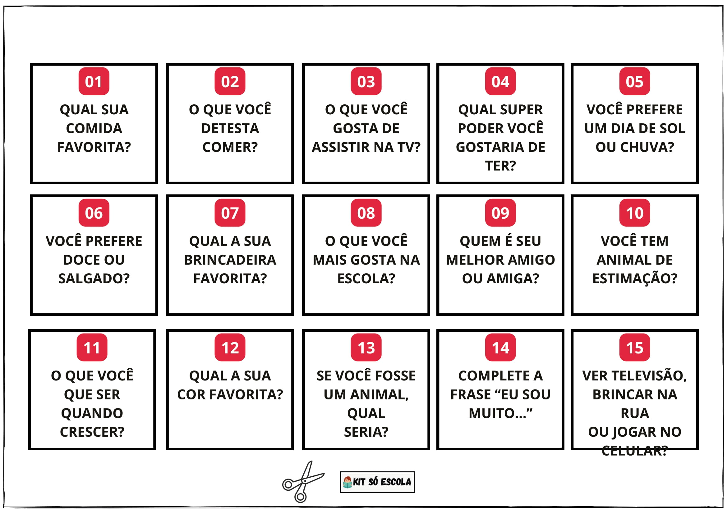 🎲 Dinâmica de Volta às Aulas – Perguntas Divertidas