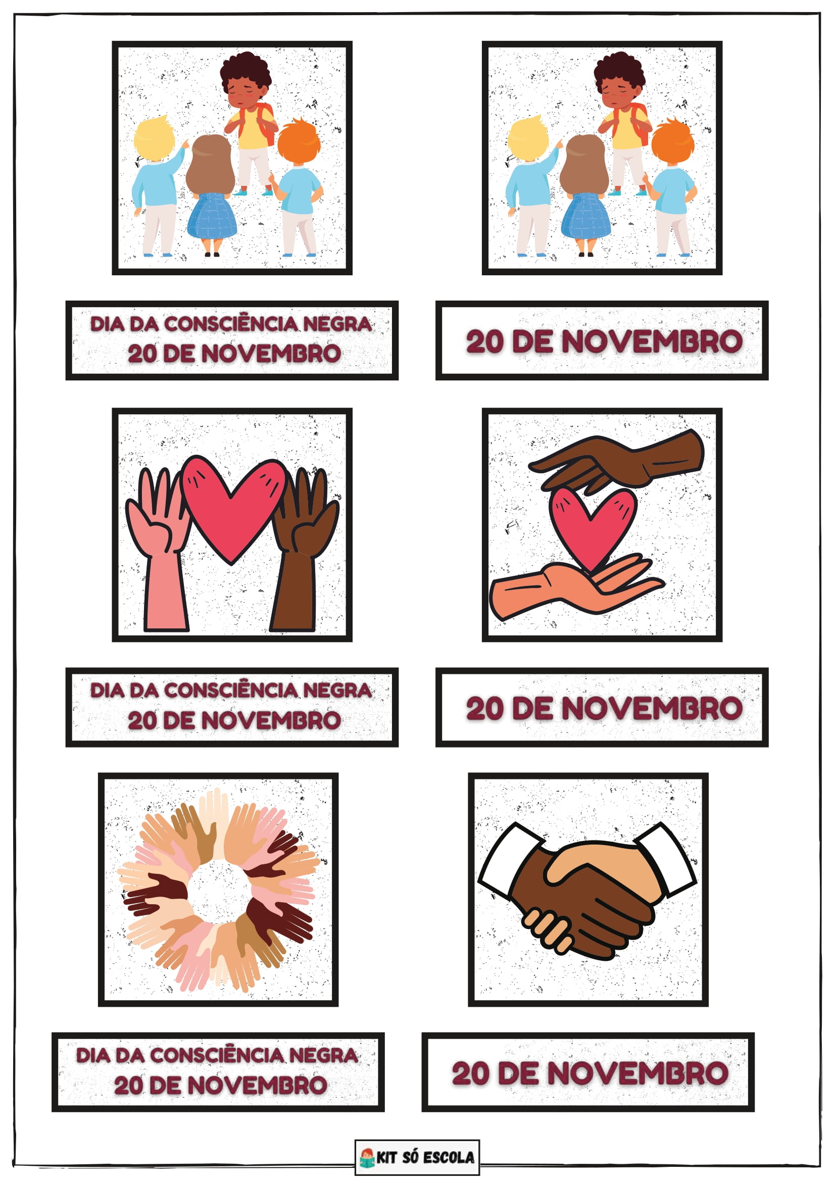 São 220 páginas em PDF com atividades, desenhos, flashcards, mandalas, máscaras africanas e sugestões de aula para trabalhar o Dia da Consciência Negra. Pronto para imprimir e com acesso vitalício!