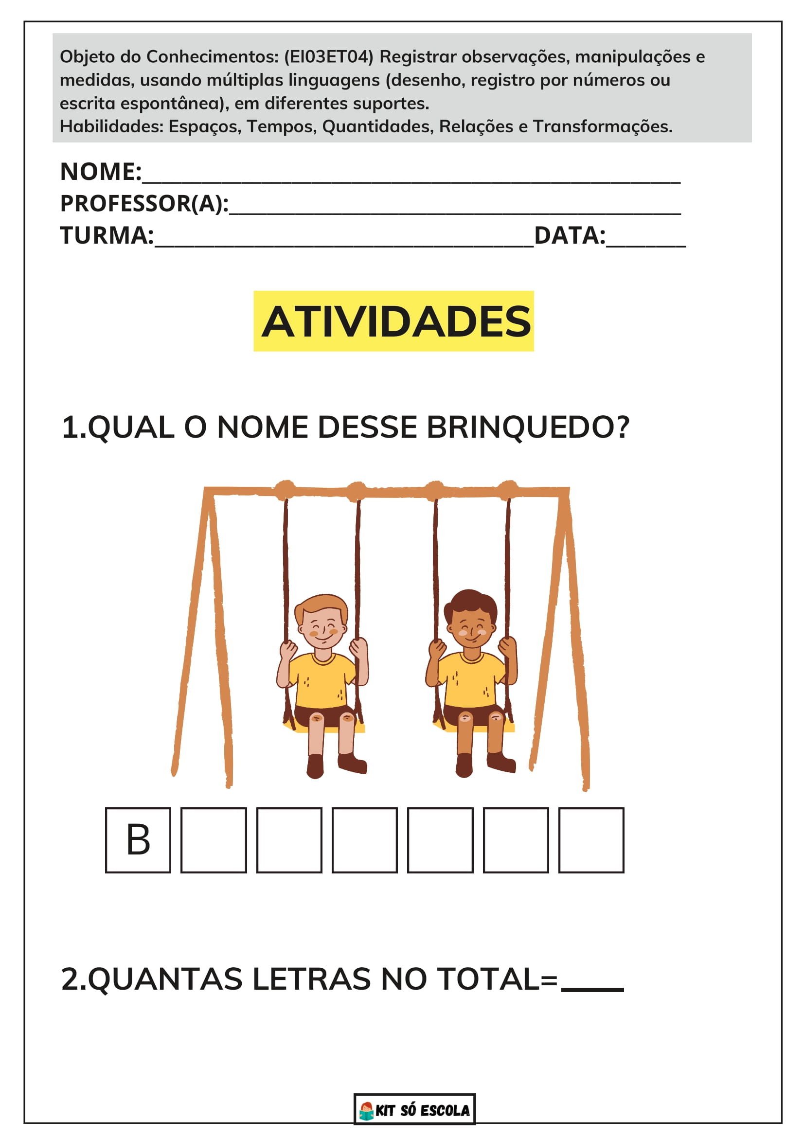 ✅ Atividades lúdicas e pedagógicas