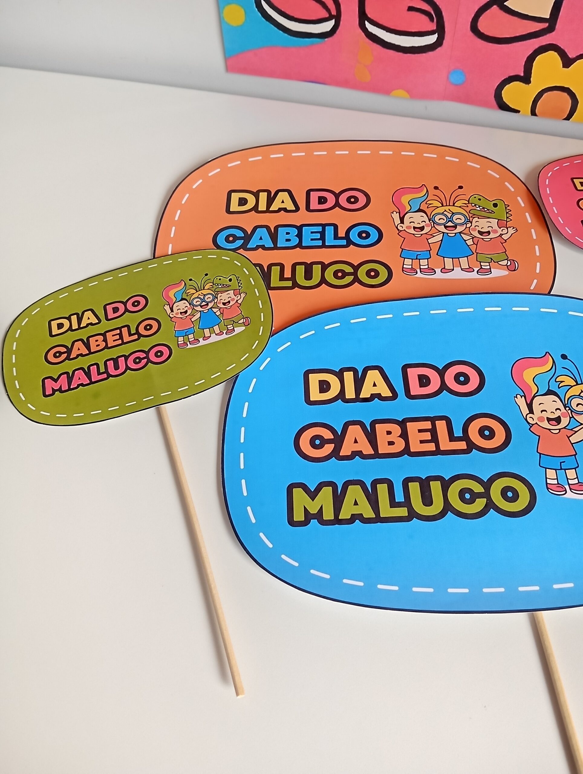 Com o Painel do Dia do Cabelo Maluco e as Plaquinhas interativas para fotos, você cria um ambiente lúdico, colorido e cheio de alegria — perfeito para celebrar essa data tão esperada pelas crianças.