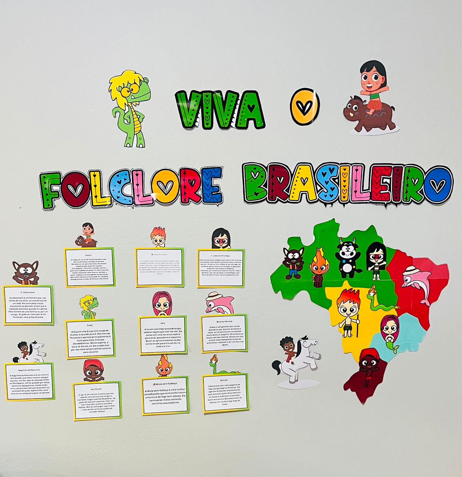 Transforme suas aulas com um painel completo e colorido, cheio de personagens, lendas e elementos que despertam a imaginação e valorizam a cultura brasileira.