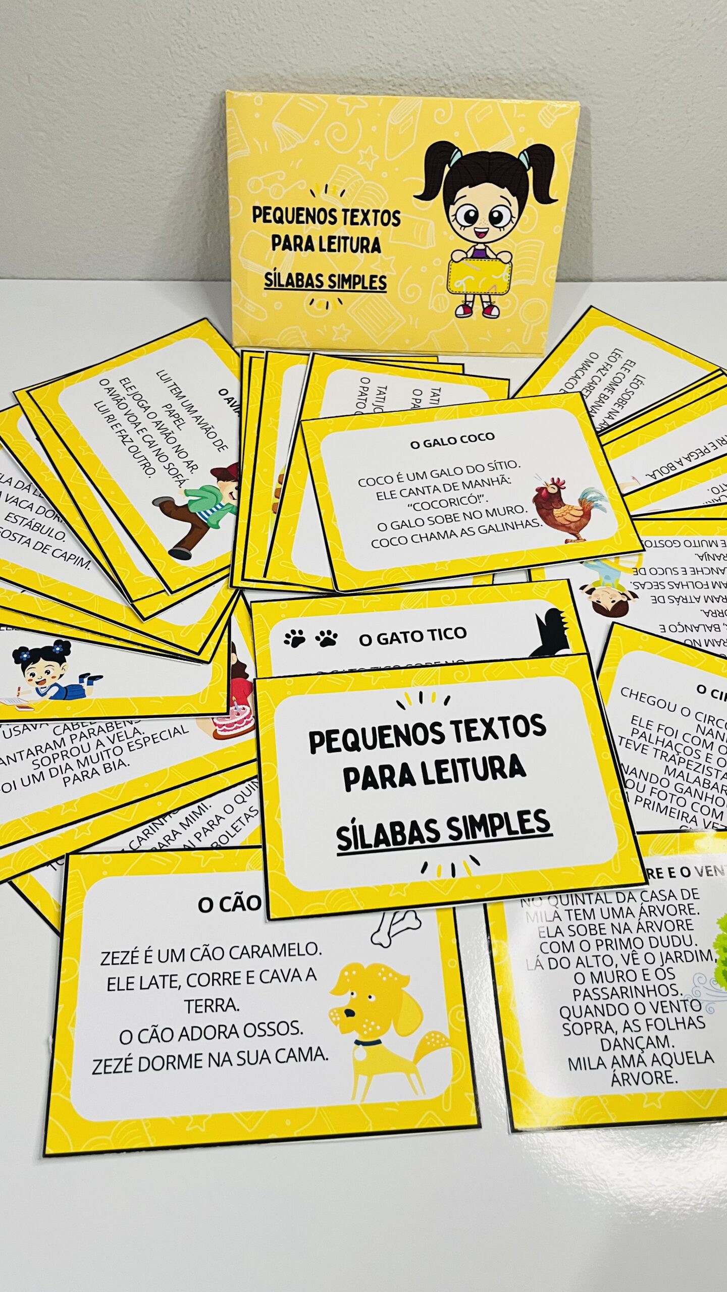 Apoie o processo de alfabetização infantil com este material cuidadosamente elaborado! Com 30 pequenos textos, construídos com sílabas simples, as crianças desenvolvem autonomia, fluência e prazer pela leitura de forma lúdica e significativa.