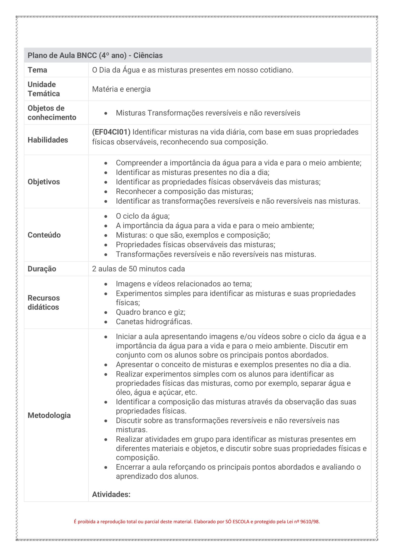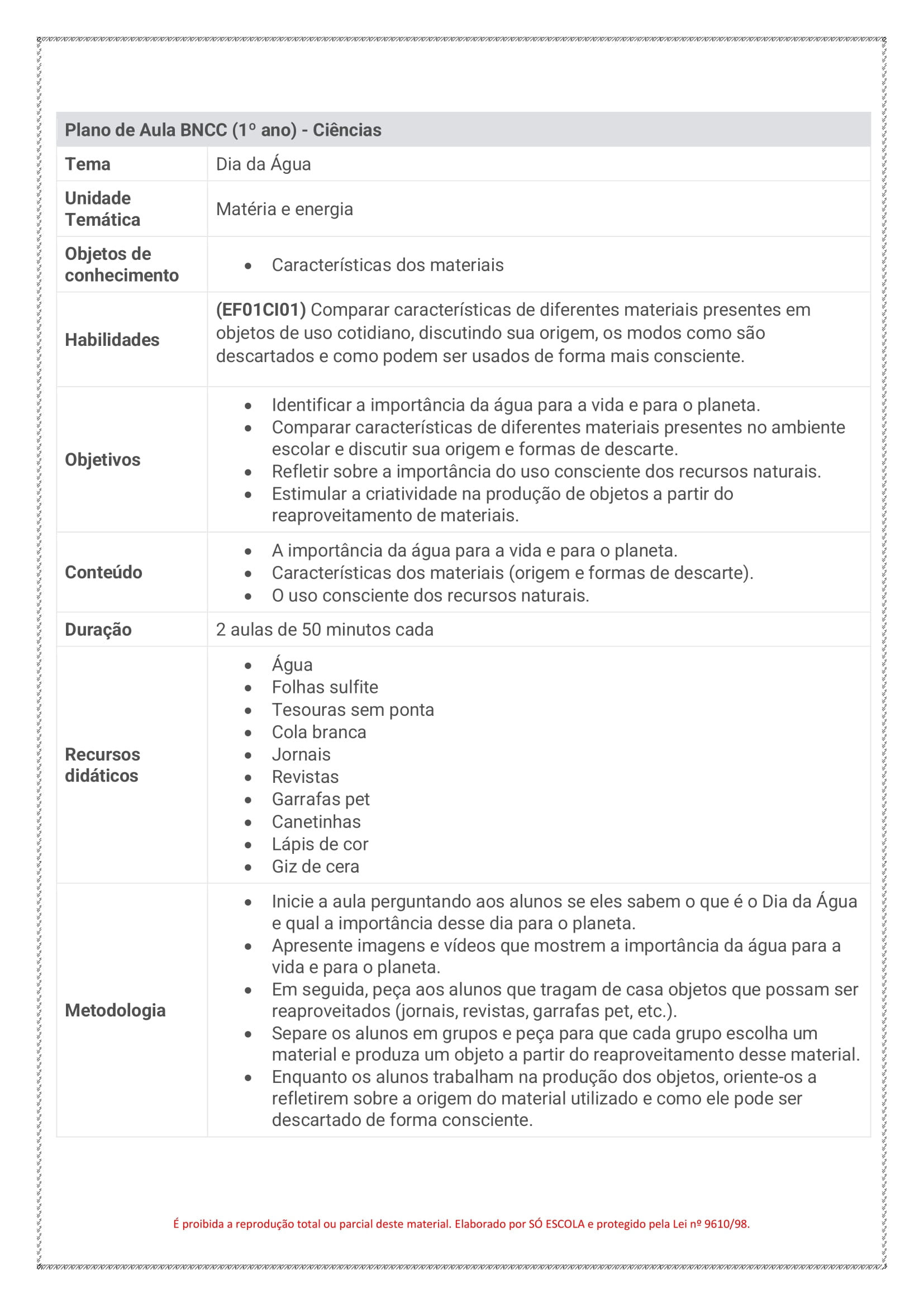 Trabalhe o Dia da Água de forma educativa e integrada com este material completo! São 42 páginas em PDF e WORD com planos de aula prontos para aplicar nas disciplinas de Português e Ciências, permitindo explorar o tema de maneira lúdica e significativa.